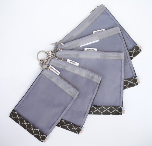- Five lightweight mesh bags, (or pouches) that fit perfectly in your existing baby or diaper bag, purse, tote bag or backpack